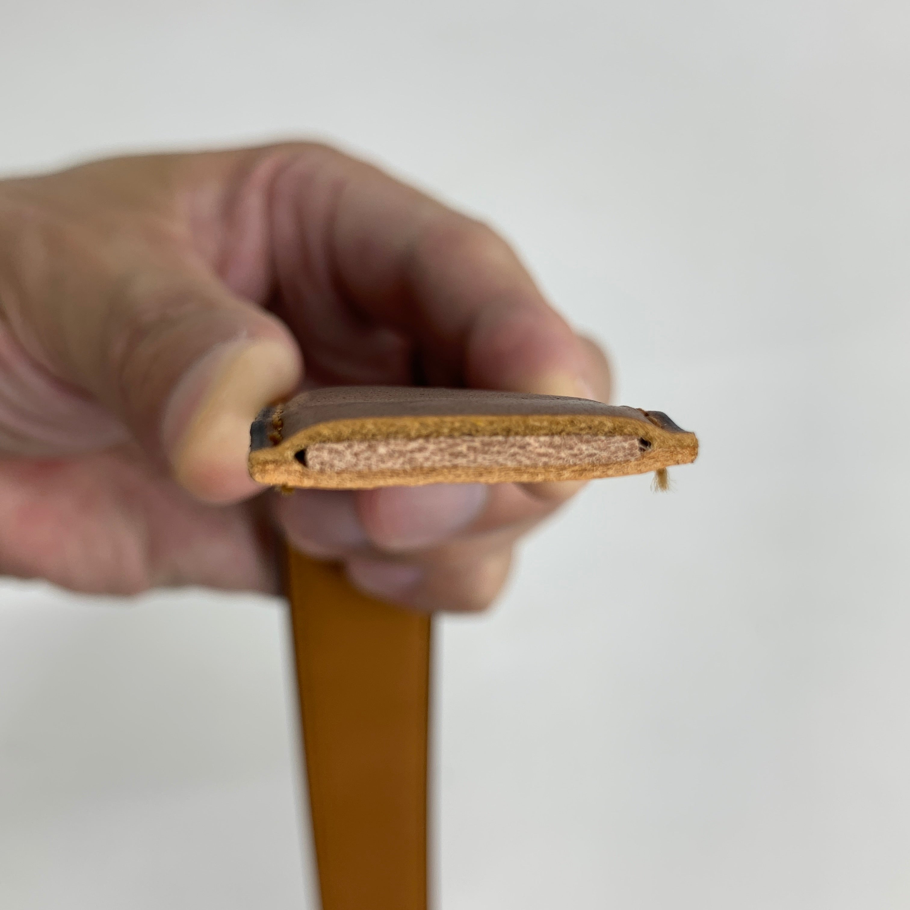 表革とウラの革の間に挟み込む芯材にもとことんこだわりました。