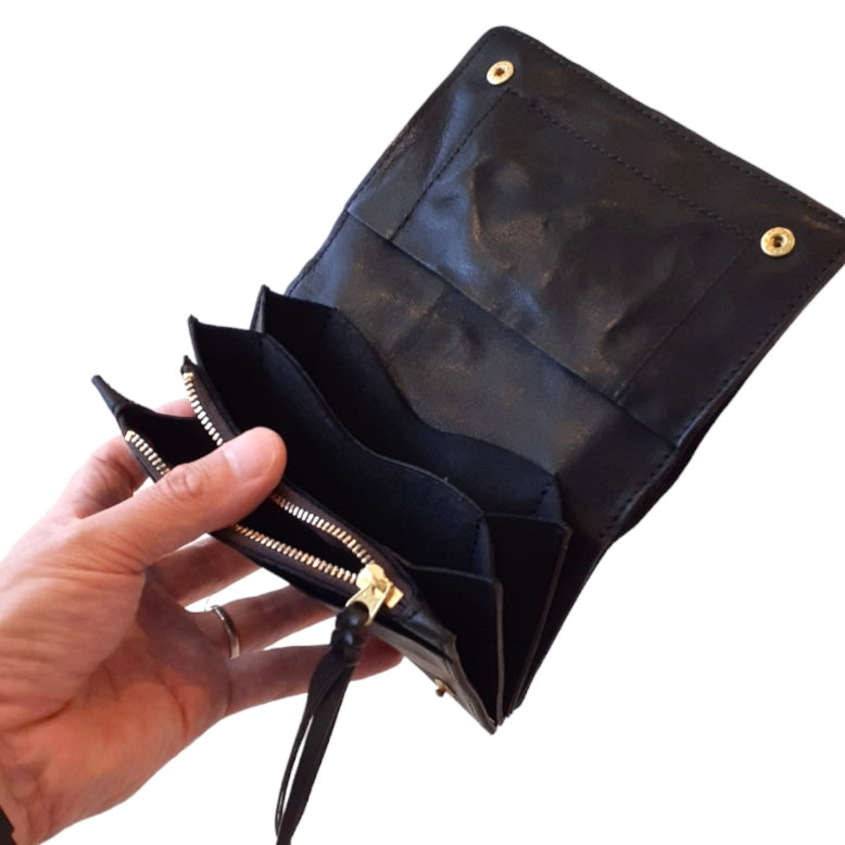 すべてのパーツに使用したワンアクションコンパクト2つ折り財布。