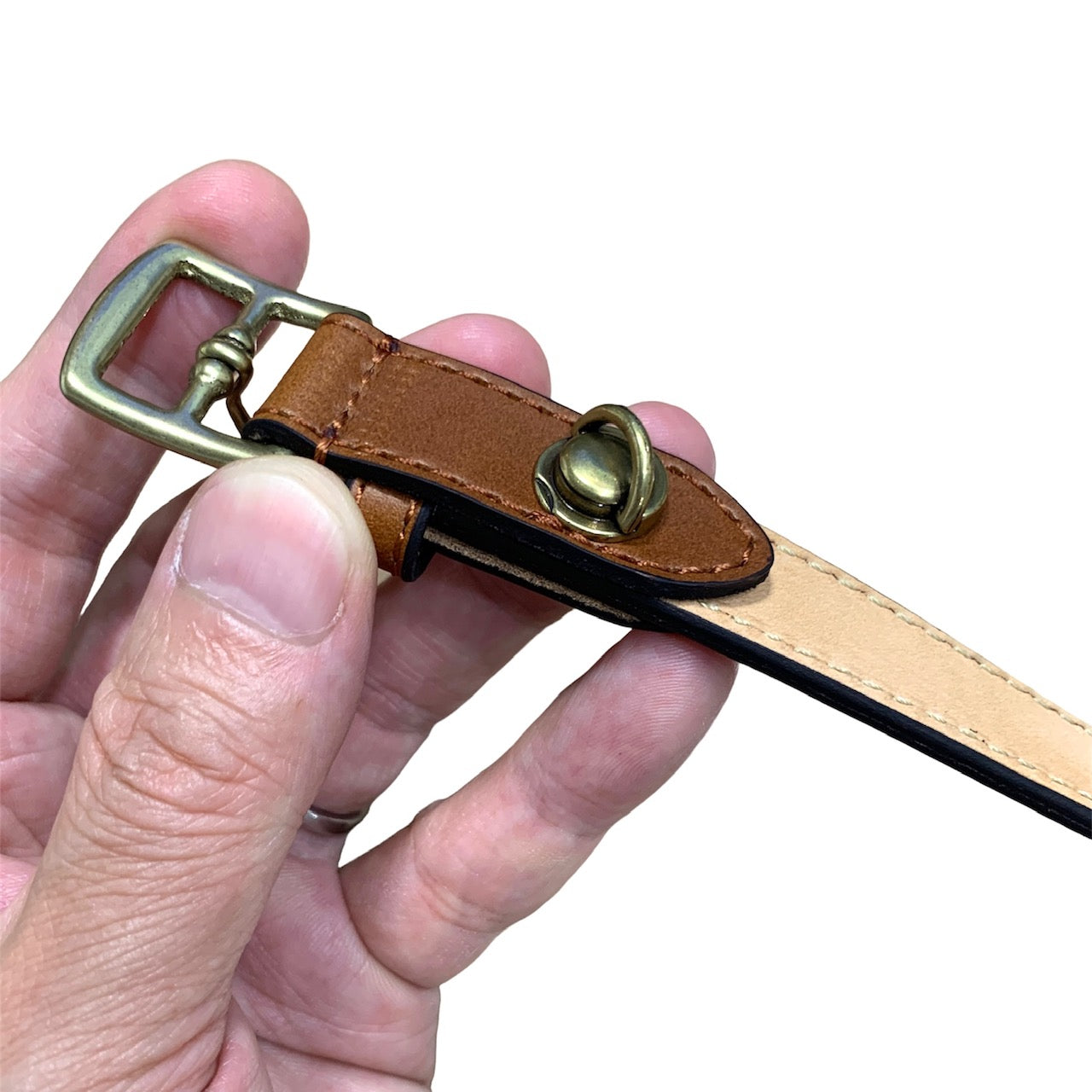 這是一款經典的腰帶,正面採用姬路皮革,背面則是栃木皮革。