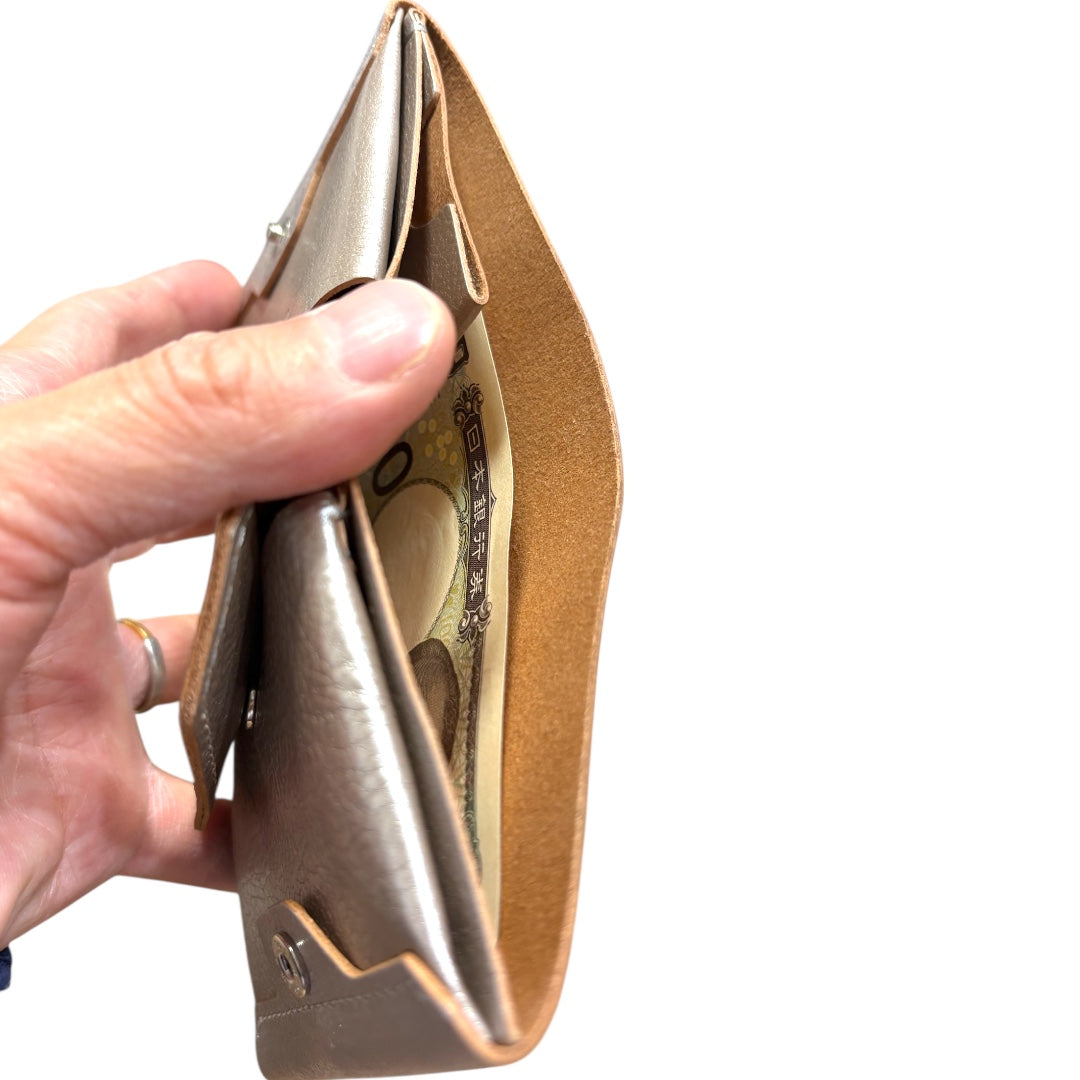 手掌大小的緊湊錢包,無需折疊即可存放鈔票。
